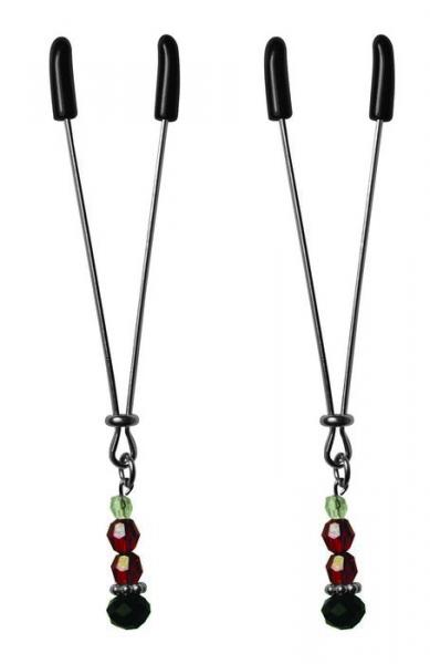 New to nipple play? These Nipple Clips are perfect for the beginner. Rings slide down the shaft of the tweezer-like clip for "as snug as you like" sensation. Soft pads at end for added comfort or remove for different sensations. From Sportsheets.