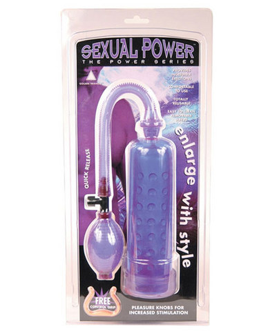 Don't enlarge your penis with any old pump! Maximize your sexual power and penis size with the lavender Sexual Power Pump. This sophisticated efficient penis enlarger is proven to increase the length and girth of your dick in just a few pumps, all while providing incredible stimulation and pleasure with the flexible knobbed sleeve. Enlarge with style before your next sexual encounter!