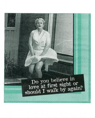 Add that fun and flirty flare to your next party with the Soft Bodies Do You Believe in Love at First Sight or Should I Walk by Again? napkins from Laid Back.