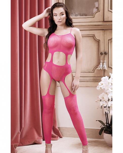 Strappy Geometric Bodystocking with Attached Stockings. Materials:90% Nylon, 10% Spandex,Washing Instructions: Hand wash separately in cold water. Do not bleach. Flat dry.Sizing Info:O/SSize: 2-12Bust: 32"-38"Hips: 34"-38"