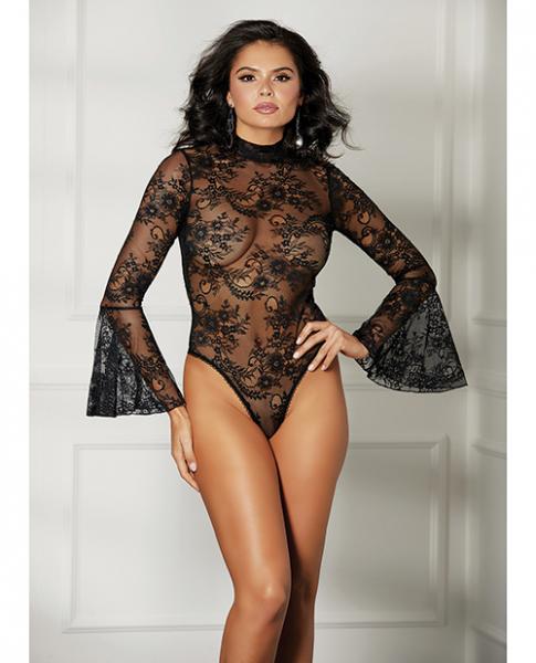 Sheer Floral Bell Sleeved Teddy. From Shirley of Hollywood.Large. Bust: 37in.-40in. Waist: 28in.-31in. Hips: 39in.-41in. Dress Size: 14.