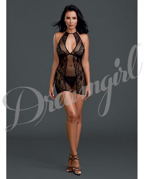 Sheer Lace Chemise with G-String from Dreamgirl Lingerie Red Diamond Collection. Color Black. One size fits most. Sizes 2 to 14. Cups B/C. Bust 32 inches to 38 inches. Waist 24 inches to 32 inches. Hips 34 inches to 40 inches. Weight 90 pounds to 160 pounds.