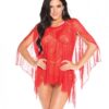 Sheer Lace Poncho with G-String Panty Red Small