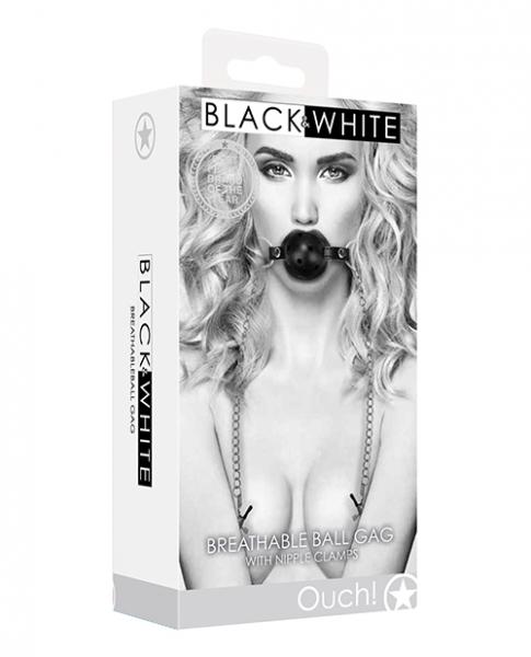 Shots Ouch Black & White Breathable Ball Gag W/nipple Clamps – Black