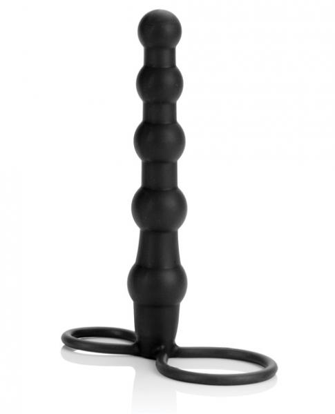 The Silicone Love Rider Beaded Dual Penetrator turns your pleasurable encounters into a memorable orgasmic experience. The sturdy beaded probe lets you spice up your erotic activities without the need to invite a third person along. With this versatile penetrator, you can share the experience of the filled up'double penetration feeling with your lover. The flexible shaft features a selection of smooth, graduated beads that provide intense pleasure. <br /><br />For comfortable and pleasurable insertion, the penetrator shaft also has stretchy loops that slip over the erect penis and provide testicular support. For increased satisfaction, always use a quality lube with this exotic toy. The penetrator offers flexible stimulation and climax options, and can also be used with a strap on. <br /><br />The Silicone Love Rider Beaded Dual Penetrator is perfect for adventurous first time and experienced users who want to enjoy a double P experience. Alternate the insertion location for maximum thrills and unlimited ecstasy. Before and after every use, remember to clean the penetrator with a toy cleaner spray or wash it in warm, soapy water. <br /><br />Material Silicone. Color Black. Dimensions 5.75 inches by 1 inch.