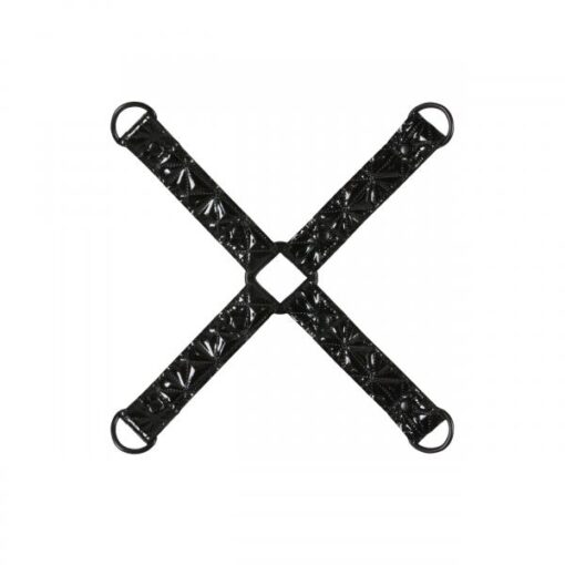 Add a spark of excitement to your play time. Customizable Hogtie Restraint from NS Novelties. Designed for extended use. Compatible with Sinful and Sinful Black Wrist and Ankle Cuffs (sold separately). Made of vinyl, neoprene and nickel-free hardware. The latest addition to our top selling Sinful bondage line is presented. This Hogtie, allows you to attach wrist cuffs and ankle cuffs behind your lovers back. Made of easy to clean vinyl and sporting all black nickel-free hardware.