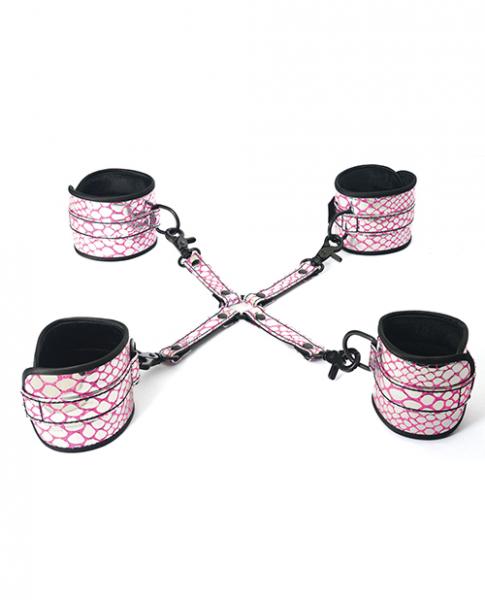 Spartacus Faux Leather Wrist, Ankle Restraints & Hog Tie Pink