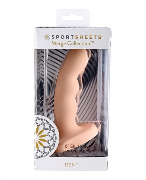 The Ren 6-inch, solid silicone dildo from the Sportsheets® Merge Collection® is the creation of pleasure and versatility combined. With its flared base, Ren can be used with O Ring and underwear style harnesses and used externally or internally for partner and solo play. The ample curvature, nonrealistic pleasure-bump shaft and tapered tip encourages G spot and P Spot stimulation, and the soft silicone creates an ultra-smooth sensation making it feel like a dream. Merge with pleasure.