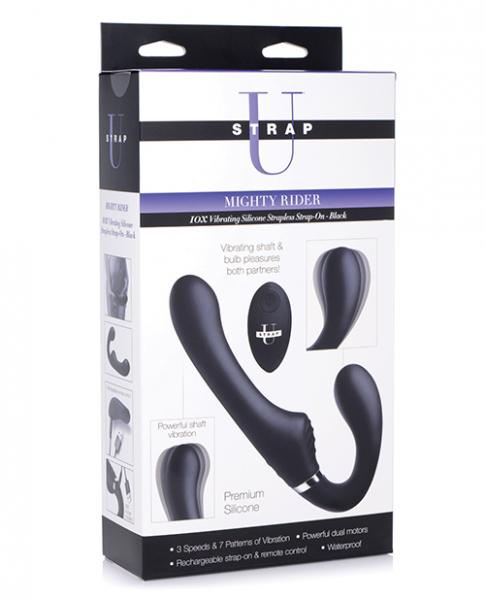 Strap U Mighty Rider 10x Vibrating Silicone Strapless Strap On – Black