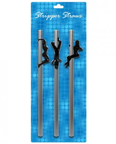 Each package contains 3 silver colored straws with plastic figurines of sexy strippers attached to each one! Strippers can be moved up and down their poles to accommodate various cup sizes. Straws are 8.5 inches tall.