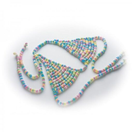 To be sweet and sexy, slip into this edible Candy Bra! Elastic holds the candy in place and one size fits most. Tell your lover you are now fat free and delectably delicious!