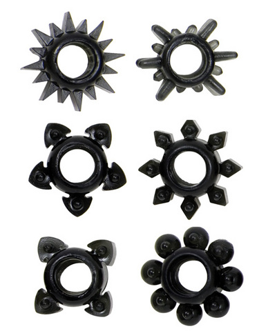 The Tower of Poer Cock Rings from Doc Johnson features six different shapes of stretch-to-fit TPR cock rings. Extend and expand your pleasure with these bad boys.