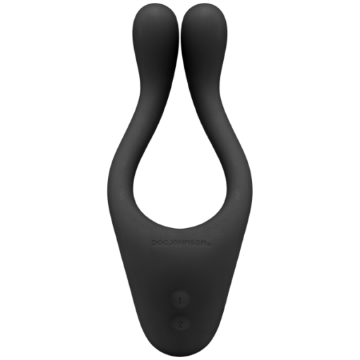 Encounter limitless pleasure. The revolutionary Tryst Multi Erogenous Zone Massager, designed with both men and women in mind, is as versatile as your desire. Wear Tryst around the penis as a solo vibrator or partner pleasing c-ring, or use the firm but flexible arms to stimulate the clitoris and nipples. With three powerful motors, seven mind blowing massage patterns, and separate arm and base controls, Tryst is anything you want it to be. Accommodates all couples and solo play. Suitable for internal and external use. 3 powerful, quiet 7 function motors. Includes black satin storage pouch. Phthalate-free and body-safe. From Doc Johnson.