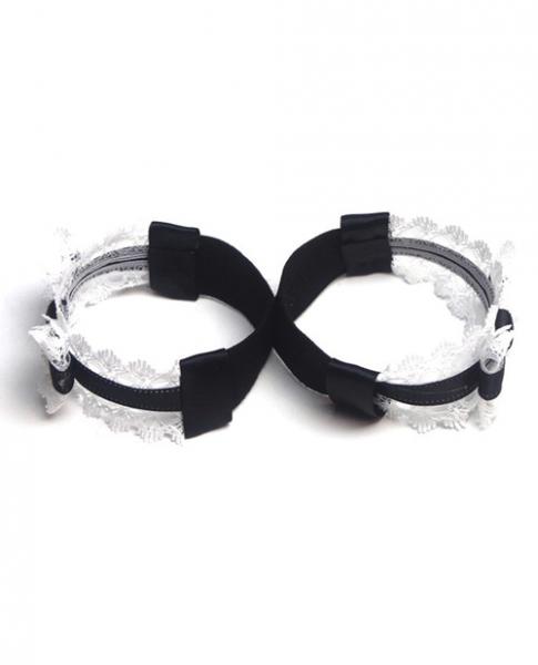 Unveil the royalty inside you with these seductively simple handcuffs! Soft elastic encircles the wrists or ankles for a sweet escape. Lacy accents the edges for a flirtatious embrace. Handcrafted satin tyes. Elasticized fit. From Tyes by Tara.