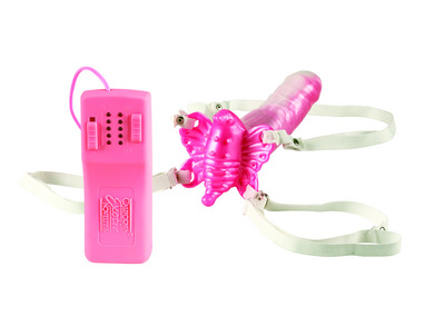 This bee wants to taste your honey! The original Venus Butterfly and Betty's Jelly Bumble Bee have combined to give you a real buzz! The jelly Venus Bumble Bee provides pinpoint stimulation to the clitoris, vagina, and anus. The textured butterfly is 3.5 inches long with a wingspan of 3.25 inches. The EZ grip rubber-coted controller has separate controls for each motor with five lock in speeds for the penis shaft and butterfly respectively. The controller with LED lights requires three AA size batteries, not included. The comfortable, adjustable waist and thigh straps fit most. The reverberating vibrations throughout the Venus Bumble Bee are sweeter than honey!