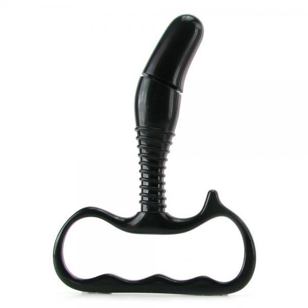 Discover your male G-spot and experience explosive, full-body orgasms with the Vibrating Prostate Stimulator. Perfect for beginners to the world of prostate stimulation, this first-timer anal vibe is cleverly curved to hit the right spot every time. The smooth, non-porous tip is angled to gently massage your prostate, while the nubby tip on the handle simultaneously presses against the perineum (the magic spot between the scrotum and the anus). Use plenty of Moist lube for an extra wet, extra wild encounter. Best of all, cleanup is a snap after the fun with Toy Cleaner and warm water. Length 5.75 inches, insertable length 4 inches, circumference 3 inches.