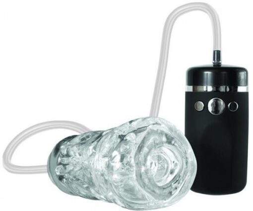 Vibrating and Sucking Stroker from Adam and Eve Toys. Make your wildest blowjob fantasies come true on demand, 24/7! Experience the mind blowing thrills of a soft and stretchy stroker sleeve that eagerly sucks your shaft in, then stimulates you with your choice of 9 different vibration functions! There is no other stroker like it! And just when you need a break in the action, a quick release safety valve helps you focus on the pure pleasure of simultaneous sucking and orgasmic vibrations! Vibrating stroker with vacuum suck technology. Perfect for oral sex fantasies, feels like being sucked. Nubbed inner channel for extra stimulation. <br /><br />Features: 9 powerful vibrating functions. Quick release safety valve. Sleeve made from super soft, stretchy Thermoplastic Rubber TPR. 6.75 inches long, 4.5 inches deep, 2.5 inches wide. Remote made from sturdy ABS plastic. Vibrating stroker uses 3 AAA batteries, not included. Sold separately. Phthalate free and latex free.