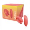 Be Part of the Chorus. The shape, the control, the features. Together, make a Chorus. The combination of technology breakthroughs and new intuitive features makes the We-Vibe Chorus a must have for couples everywhere. We-Vibe® Chorus is a hands-free couples vibrator that takes you to next-level sex. Chorus is all about giving you exactly what you need to maximize pleasure, together. With an adjustable fit, touch-responsive vibrations and customizable controls, it's the most advanced and intuitive couples vibrator ever. Powerful, rumbly vibrations. Intensify your pleasure with 10+ modes and deep, rumbly vibrations. Chorus is 100% waterproof, making it easy to enjoy anywhere and simple to clean. Worn during sex, Chorus is adjustable to fit your unique body so you can feel the vibrations right where you want them. The shape is easy to adjust, then stays in position once you've found the perfect fit. Change vibration modes as well as the intensity in the heat of the moment. Chorus' Squeeze Remote is designed with the most natural human response in mind – the tighter you squeeze, the stronger the vibration gets. Release your grip and the vibration weakens. Chorus features unique touch-sensitive receptors located beneath the We-Vibe logo. As you play, your movements control the vibrations. Choose from three Touch-sense modes to find your ultimate pleasure. USB rechargeable : Convenient and eco-friendly, Chorus is rechargeable with up to 90 minutes of play on a single charge. Beautifully designed case Low power alert : Know when your Chorus needs a charge, so it's always ready to go when you are. With the free We-Connect app, you can play and share control of Chorus from anywhere, create custom vibes and play together with other We-Vibe products. Vibe to music with Beat mode or use Touch mode for real-time control at your fingertips. Better connectivity. Chorus is powered with AnkorLink technology. AnkorLink creates the most stable connection between your We-Vibe and the We-Connect app. The Squeeze Remote is the anchor between Chorus and the We-Connect app — you'll need to keep it close by whenever you're using We-Connect.
