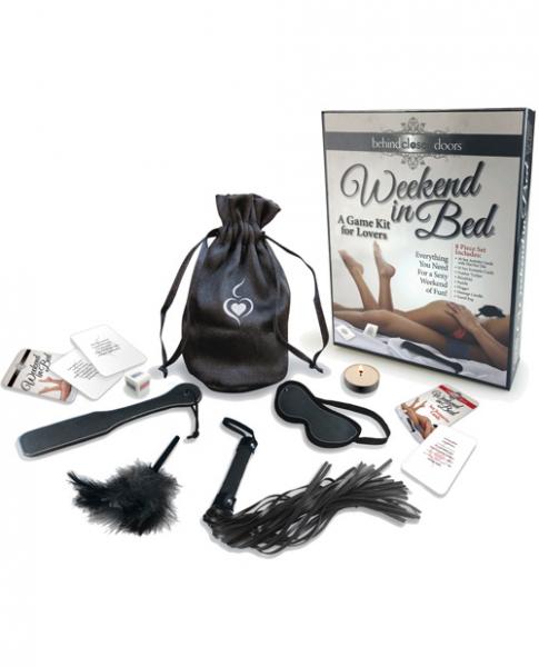 Let the adventure begin! Whether you spend the weekend at home or in another romantic location, you and your lover can always spend it in bed! Make that time together more exciting and passionate with our new Weekend in Bed Game Kit. Includes: 2 Adult Card Games that incorporate your new Items, Satin Carry Bag, Paddle, Feather, Blindfold, Flogger, and Candle. From Little Genie.