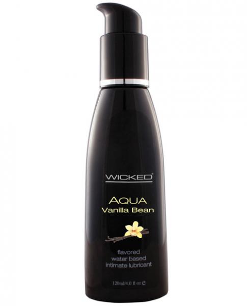 Aqua Vanilla Bean water based lubricant from Wicked Sensual Care Collection. Take a big juicy bite! Kissable, lickable and delicious, Aqua Vanilla Bean adds subtle natural flavors to enhance oral pleasures. Light & silky, this water based formula is the perfect sensual combination of an elegant lubricant and a flavor sensation. Never sticky and without an aftertaste, AQUA Vanilla Bean satisfies your sweet tooth and your intimate desires all in one amazing pleasure product. Long lasting. Latex condom friendly. Paraben free. Never sticky. No aftertaste. Vegan no animal by-products or testing. <br /><br />To use: apply to areas where lubrication and flavor sensation is desired. Cleans away easily with water. Cautions: If irritation or discomfort occurs, discontinue use and consult a physician. This product is not intended for use as a contraceptive. Avoid contact with eyes. Keep out of reach of children. Ingredients: Water, Glycerin, Cellulose Gum, Stevia Rebaudiana Extract, Olea Europaea (Olive) Leaf Extract, Hydroxyethylcellulose, Tetrasodium EDTA, Citric Acid, Sodium Benzoate, Potassium Sorbate, Flavor.