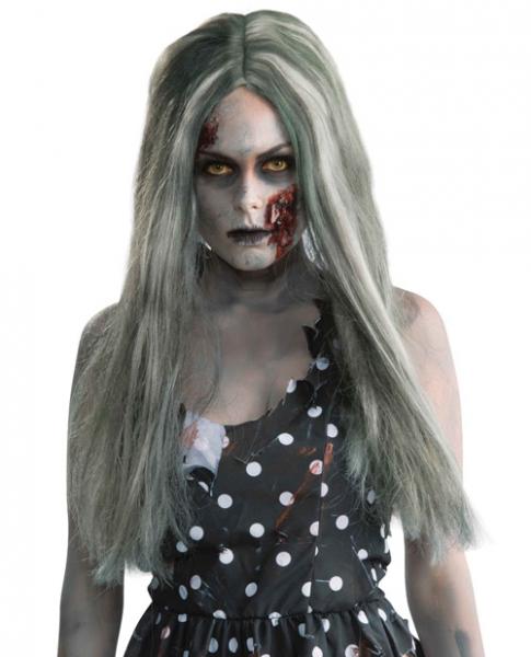 You'll be the most gruesome walking dead when you pair this Zombie Creepy Wig for Adults, The long wig is a blend of grey, white and green to transform you from head to toe into a rotting corpse, Material: 100% Polyester, Includes: Zombie Wig, Care Instructions: Wipe Clean with Damp Cloth, Line Dry, Do Not Wash, Do Not Bleach, Do Not Dry Clean